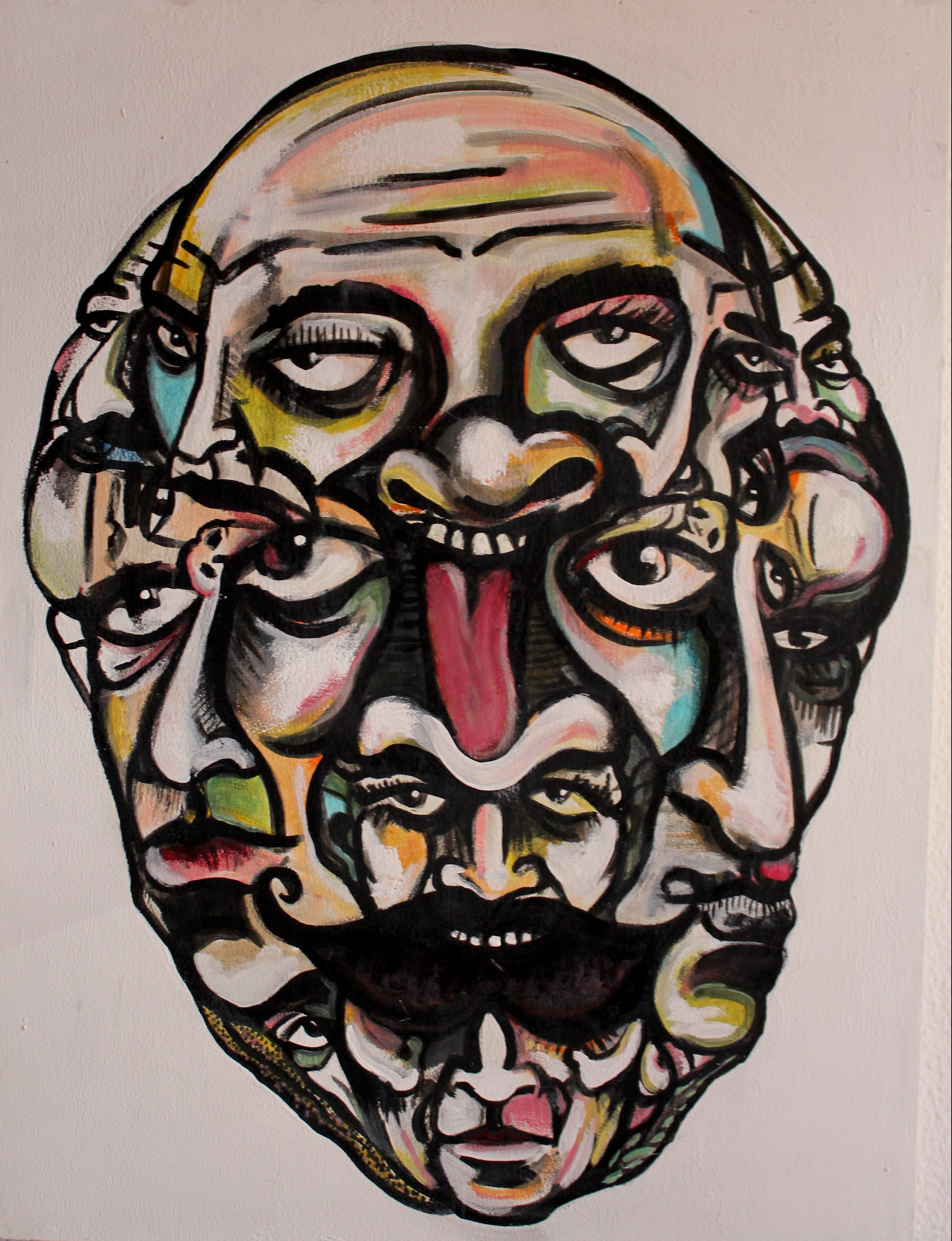 Bob Glynn is a Visual Artist from Ireland and currently Based in Madrid, Spain. He has been producing paintings and sculptures for the last 10+ years. He is currently working on a series which tries to deal with the complex theme of Identity Crisis in Modern Society.His Latest Series is Titled Multiple Personality Disorder.